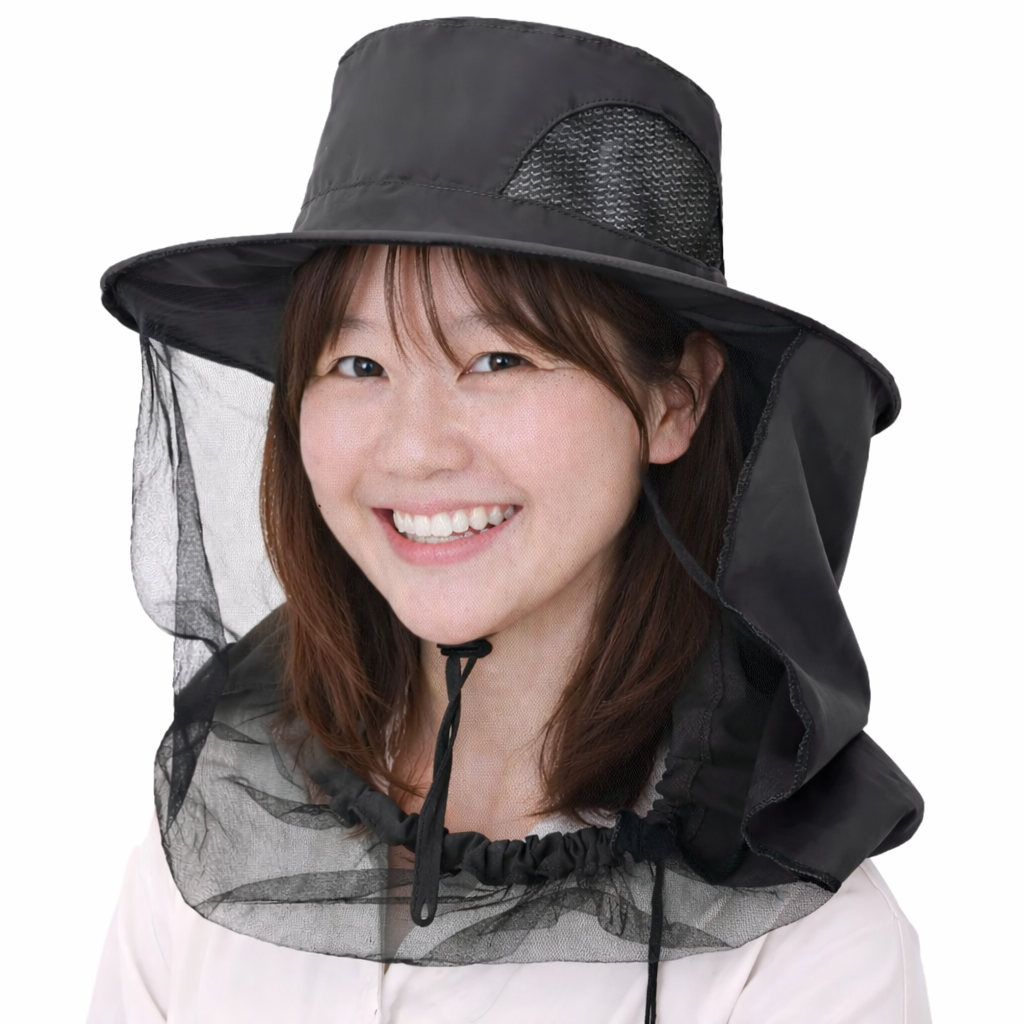 防虫と紫外線対策が同時にできる一石二鳥の帽子です。草刈、釣り、登山、ハイキング、キャンプなど屋外作業に大変重宝です。お顔周りの虫よけと日よけは、これひとつでOK。折りたたんでコンパクトに収納できます。